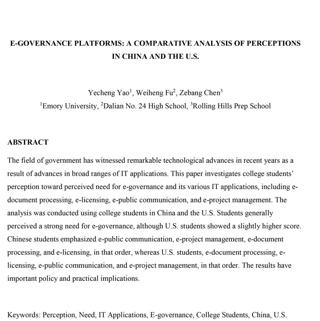 E-GOVERNANCE PLATFORMS: A COMPARATIVE ANALYSIS OF PERCEPTIONS IN CHINA AND THE U.S.